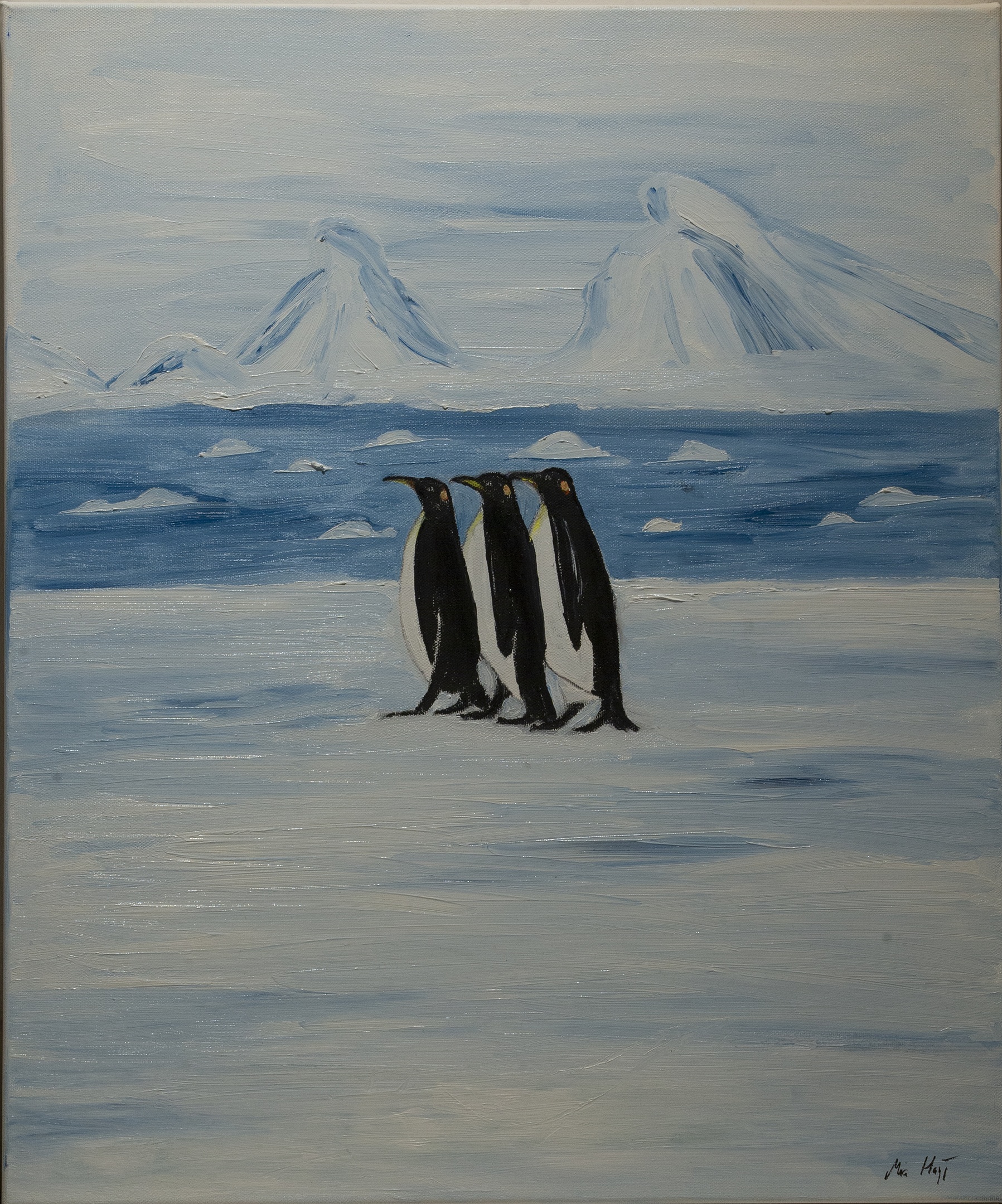 Motiven hämtar jag från naturen som skärgårdsmotiv, båtar, hav, rävar, fåglar allt från Strandskator till Pingviner.